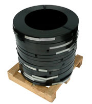 Reggetta acciaio bluata Reggetta acciaio finitura bluata (ad alta resistenza). Rotoli su bancaletti palettabili (specificare se bobinata a spira unica o matassata).
