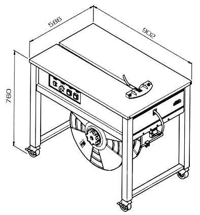TEC 202 Reggiatrice semiautomatica a banco Reggia in polipropilene da 6 a 15,5 mm - Piano di lavoro in acc.Inox - Controllo meccanico del tensionamento - Motori 230V